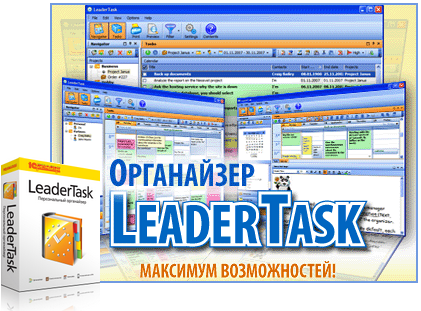 LeaderTask - это Планировщик + ПИМ + Календарь + Адресная книга + Ежедневник. LeaderTask - умный органайзер для Лидеров.