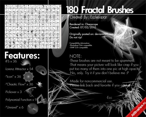 Большой набор фрактальных кистей для фотошопа Абстрактные кисти для Photoshop скачать бесплатно Размер: 25.2 mb