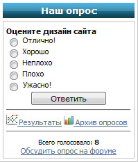 Еще один вид опросов на ваш сайт, достаточно простой, но красивый. Установка: Код в форме опросов заменить на вот такой вот: