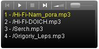 Аудиоплеер поддерживает воспроизведение mp3 файлов,дополнительно оснащён плейлистом для воспроизведения нескольких музыкальных композиций.Файлы музыки Вам нужно будет закачивать на ФТП сайта ( сервер ) на главную страницу сервера,то есть не в дополнительно созданные папки а там где robots.txt и favicon.ico.Так путь до композиции будет коротким,если файлы прописывать из папок то названия в плейлисте будут отражать путь папок например: ( muzik/audio/mp3/pzds.mp3 ).Да,это плеер такой,а что делать приходится выкручиваться если повод есть.А так дополнительных элементов он не имеет,все песни вписываются напрямую в код через разделитель |.
