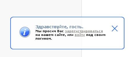 Скрипт оповещает пользователя сайта о регистраци или войти под свом логином. Если юзер не хочет пройти регистрацию или войти в свой аккаунт, оповещение можно закрыть в один клик.
